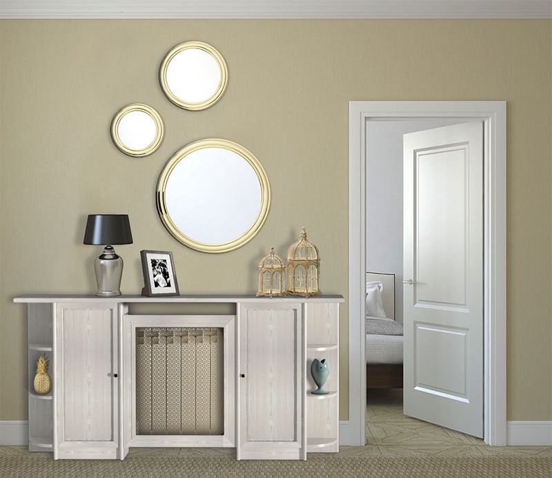 Modifica di copricalorifero per l ottenimento di un mobile con estensione ad angolo, realizzato su misura, con stessa altezza del copricalorifero e larghezza fino a 30 cm (le misure di larghezza vanno inicate nel campo note).