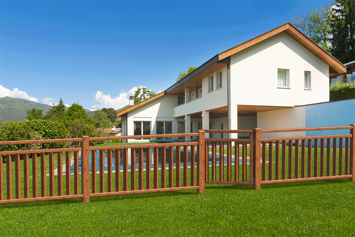 Disponibile in due altezze e due larghezze, nella versione naturale (Pino impregnato in autoclave) o reimpregnata in diversi colori, con o senza l'aggiunta di elemento corrimano di altezza 4.5 cm.